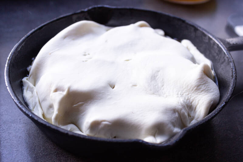 - Prik twee gaatjes in het bladerdeeg zodat de stoom vrij kan komen in de oven.