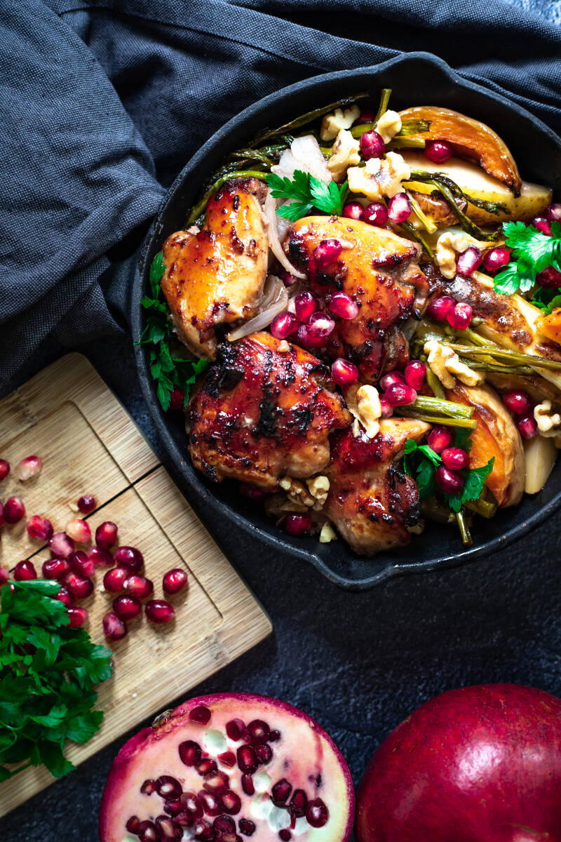 Een mooie rode granaatappel. Ze zijn zo prach5g rood en zijn een hun kleine segmentjes knallen met smaak. Dit ovengerecht en easy maar heel erg smaakvol. Ik geef je gelijk een 5p voor als je het moeilijk vind de granaatappel los te maken. Snijdt de granaatappel in kwarten en haal de segmentjes los in een kom met water! Veel kookplezier! Op mijn Instagram vind je nog een reels terug met extra beeldmateriaal voor dit recept.